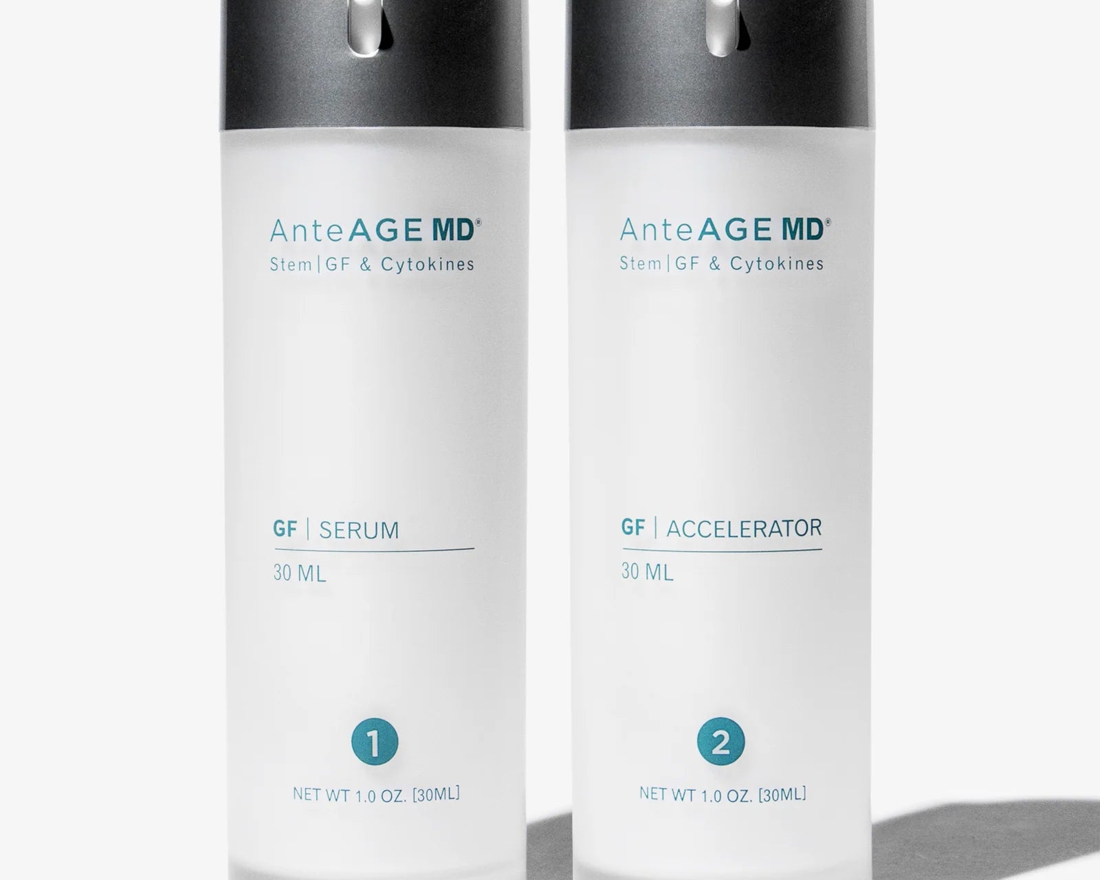 AnteAGE® MD System contains twice the Stem Cytokines found in AnteAGE, along with 21 additional ingredients with proven anti-aging, pro-healing and anti- inflammatory benefits. With daily use, it improves the health and appearance of skin at any age. The stem cell technology behind AnteAGE® MD is leading edge and published in multiple peer-reviewed medical journals. This powerful pro-healing formula is ideal for use as a post-procedure topical adjuvant following laser, microneedling, abrasive, and other ablative or collagen inducting treatments. AnteAGE® MD System SET CONTAINS ONE AnteAGE MD SERUM (30ml) and ONE ANTEAGE MD ACCELERATOR (30ml).